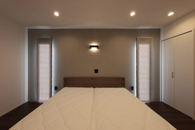 寝室は、シックな色合いで