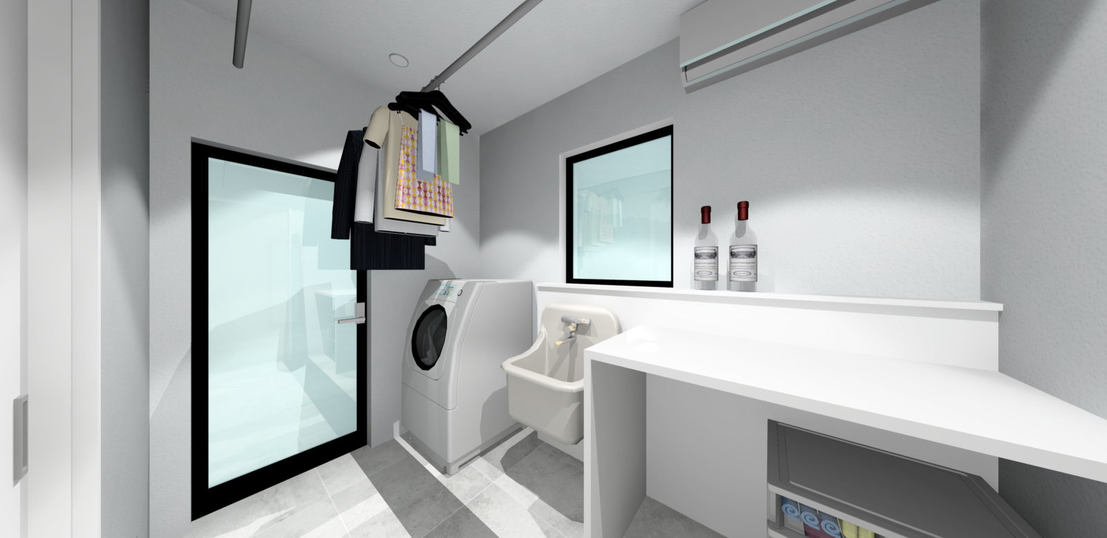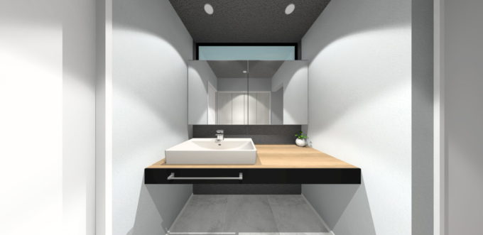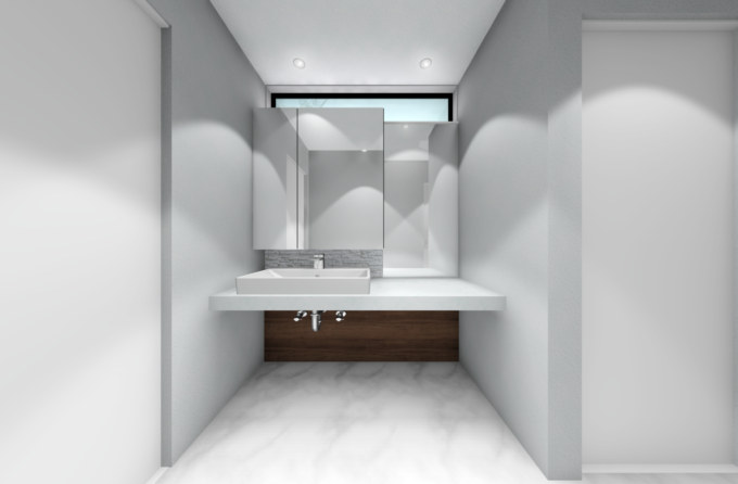 洗面台は、右側に寄せて