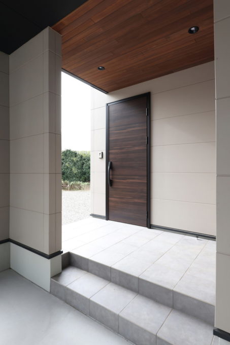 ブラックや石張りがアクセントとなった外観デザイン😊