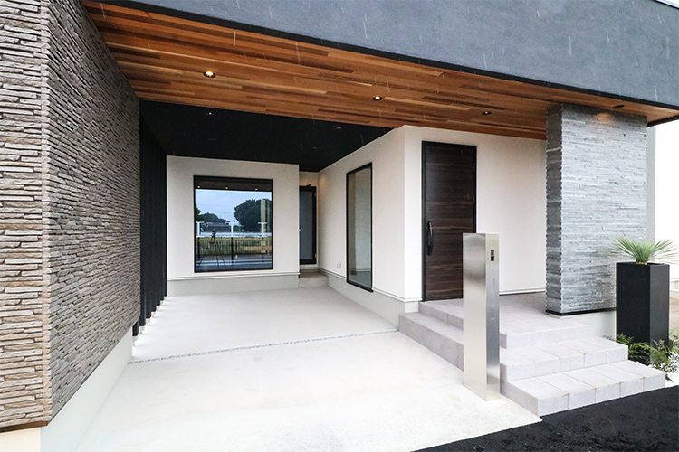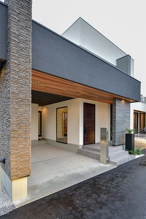 効率的なガレージ、直線的な動線を計画して、奥様のためのガレージにも。雨でもお子様の乗り降りを快適アシスト!