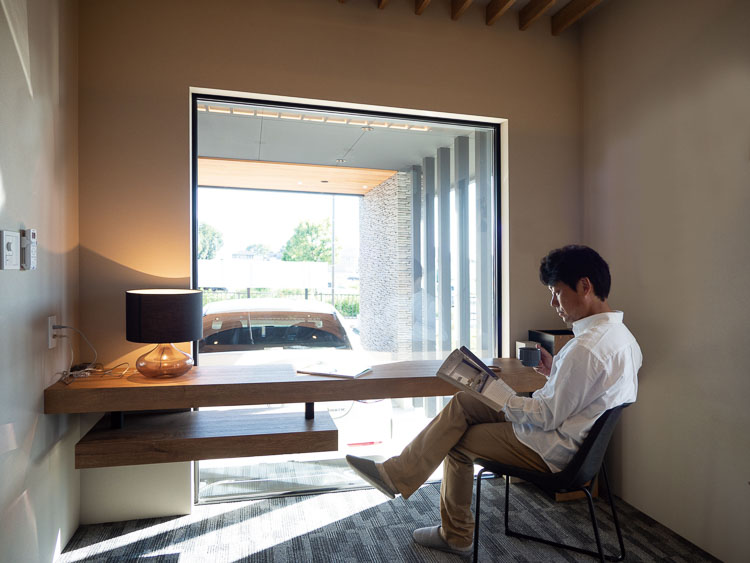 車やバイクなど、愛車のためのガレージはもちろんのこと、ガレージルームなどを設け男の隠れ家的な書斎など、愛車を眺めながら寛ぎ愉しむ。
