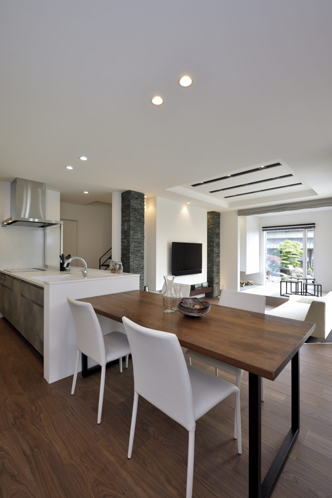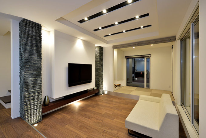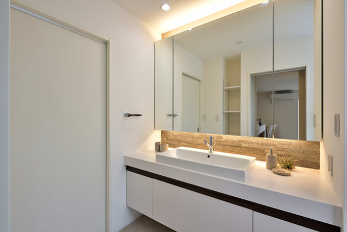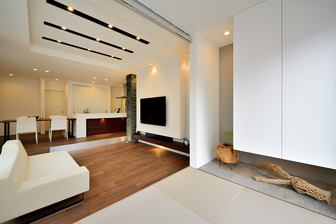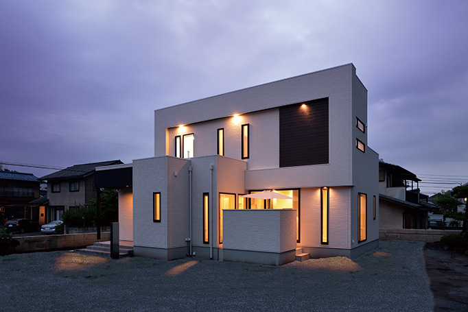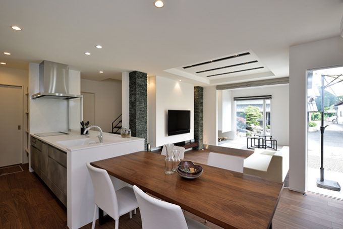 家族を感じるホワイトベースのシックモダンハウス