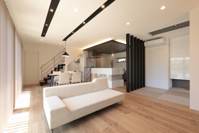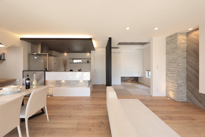 LDK+畳スペースをシンプルナチュラルモダン×ホテルライクにデザインコーデ。SIBUSAWA流のジャンルMIXを表現した。使い勝手とデザイン性を感じる空間をバランス良く配置し、造作性やインテリアなどを絶妙にマッチングした仕上がりとなった。センス溢れる空間は何処を切り取ってもそれぞれの目線によって、美しく、愉しく、心和む空間をみせることができることをセンス溢れるとSIBUSAWAは解釈し、それをさりげなく表現した空間となった。