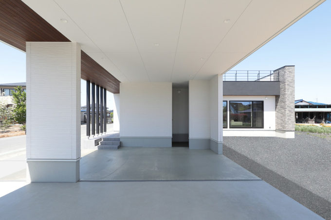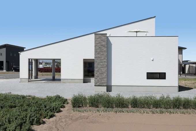 360°見渡せる立地条件。まさにSIBUSAWA-STYLEの真骨頂である希望の間取りやガレージ配置をカタチにしながら、その立面でもある外観デザインを様々な角度から見ても美しく、センス良くまとめ上げた。常に快適に、美しく、センス良く、を行い続けるからこそ成せる技である。また、太陽光パネルを片流れ屋根に設置。美しさを邪魔することなく仕上げた外観となった。